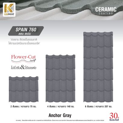 หลังคาเคลือบเซรามิก Kinroof รุ่น SPAIN 760 สี Anchor Gray