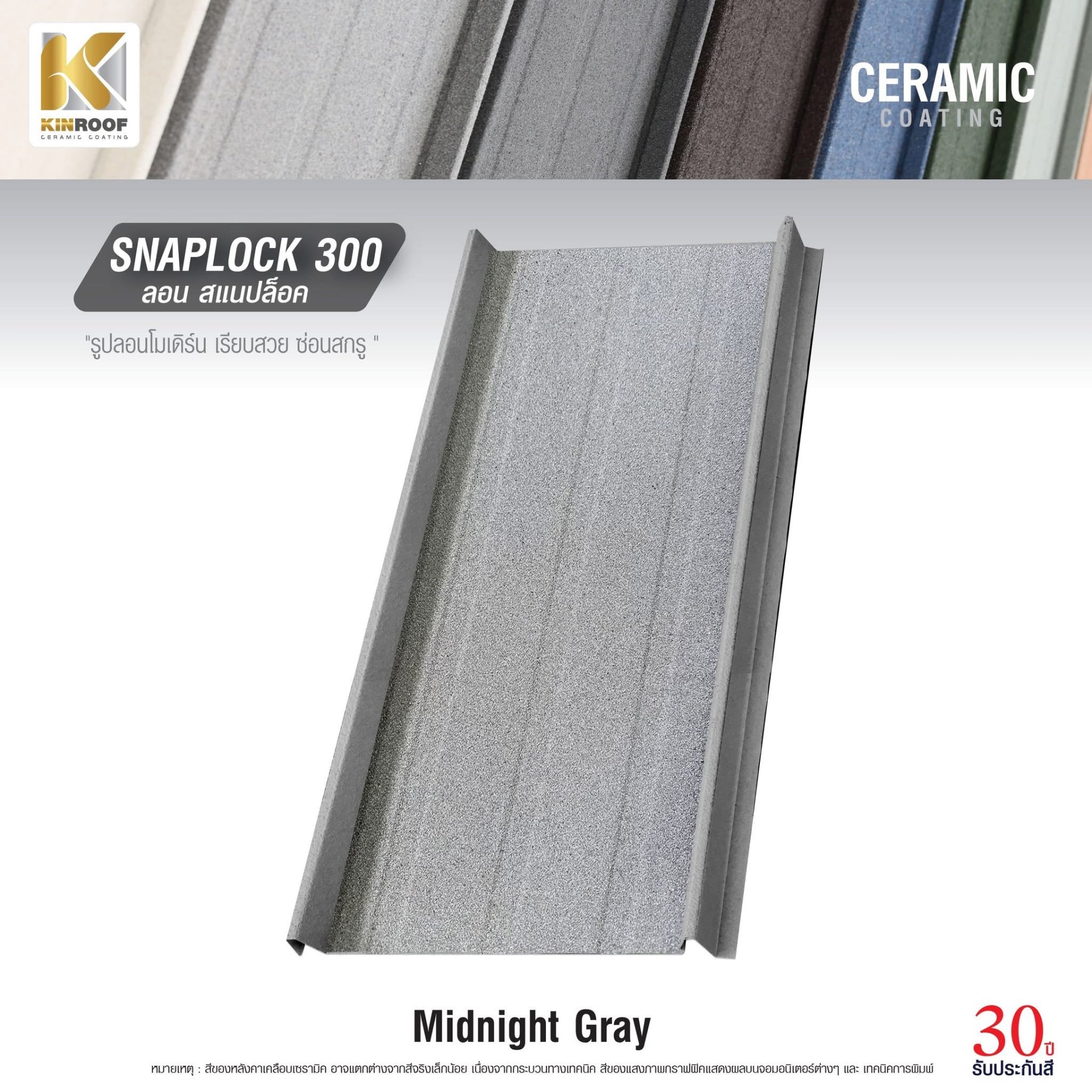 รุ่น SNAPLOCK 300 สี Midnight Gray - ทนทาน สวยหรู ลดความร้อนในบ้าน ลดเสียงรบกวน คุ้มค่าทุกการลงทุน พร้อมทีมงานแนะนำมืออาชีพ